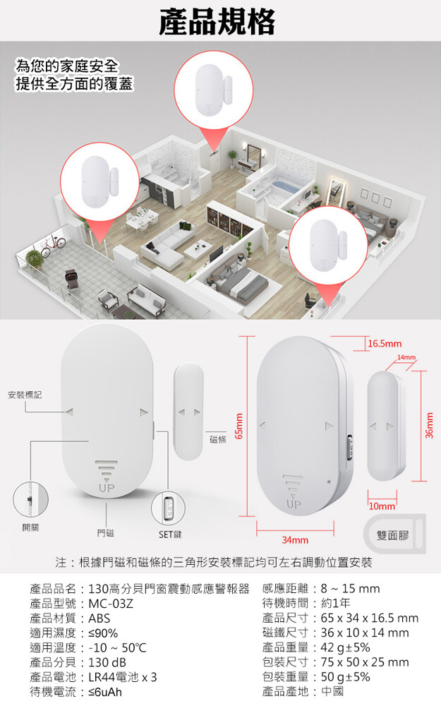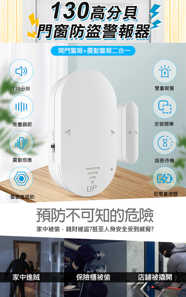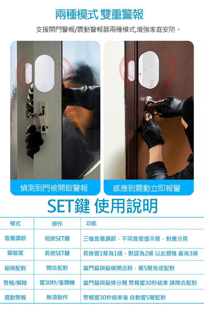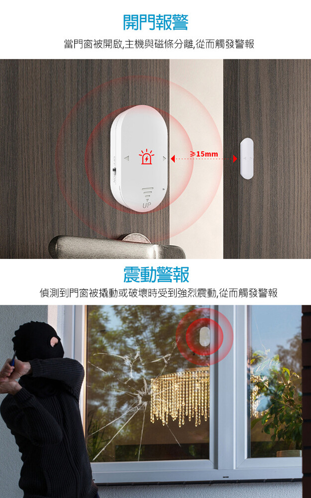 01.雙重警報設計:門開即響+震動感應,全面防護更安心。