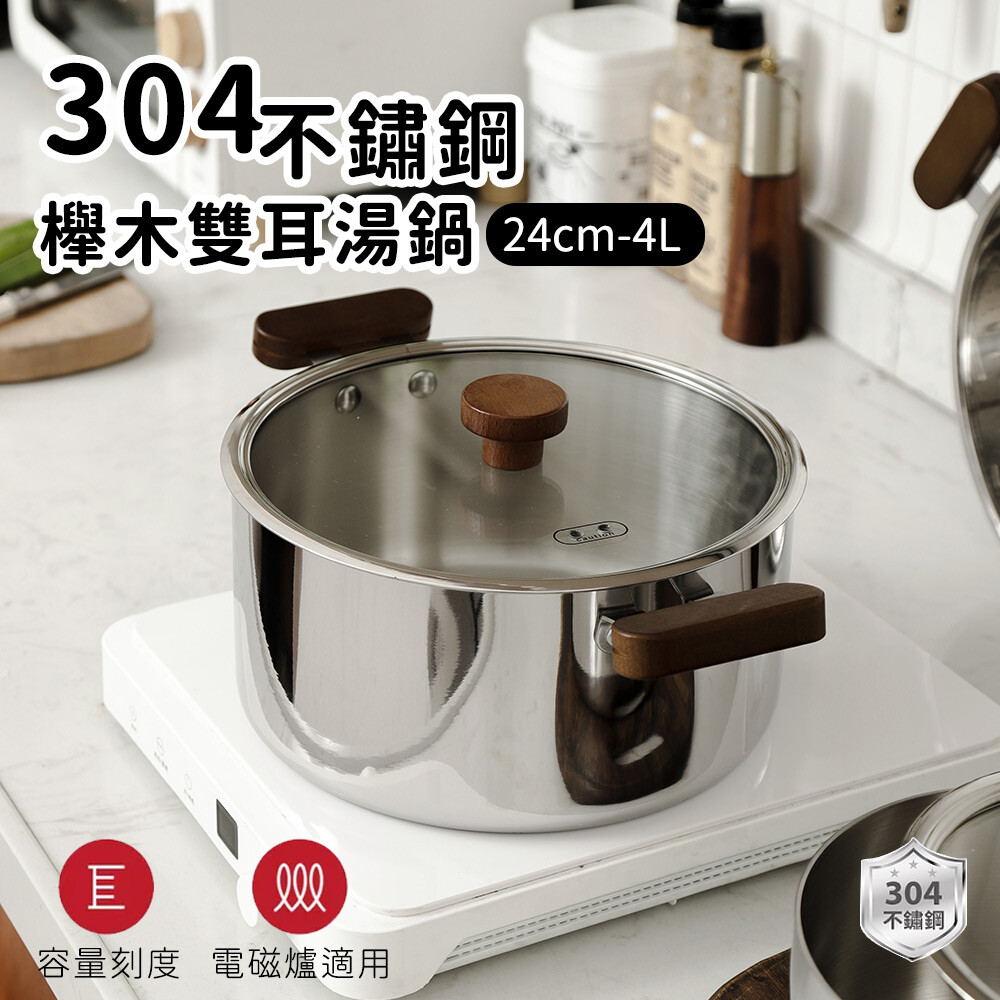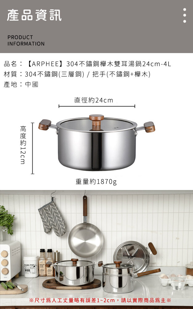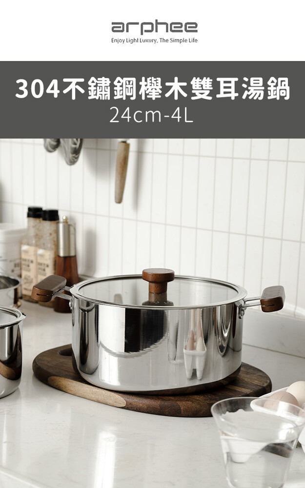 品名:【ARPHEE】304不鏽鋼櫸木雙耳湯鍋24cm-4L