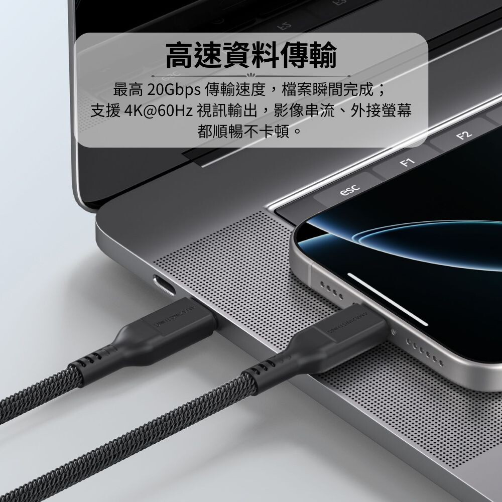 最高 20Gbps 傳輸速度,檔案瞬間完成;支援 4K@60Hz 視訊輸出,影像串流、外接螢幕都順暢不卡頓