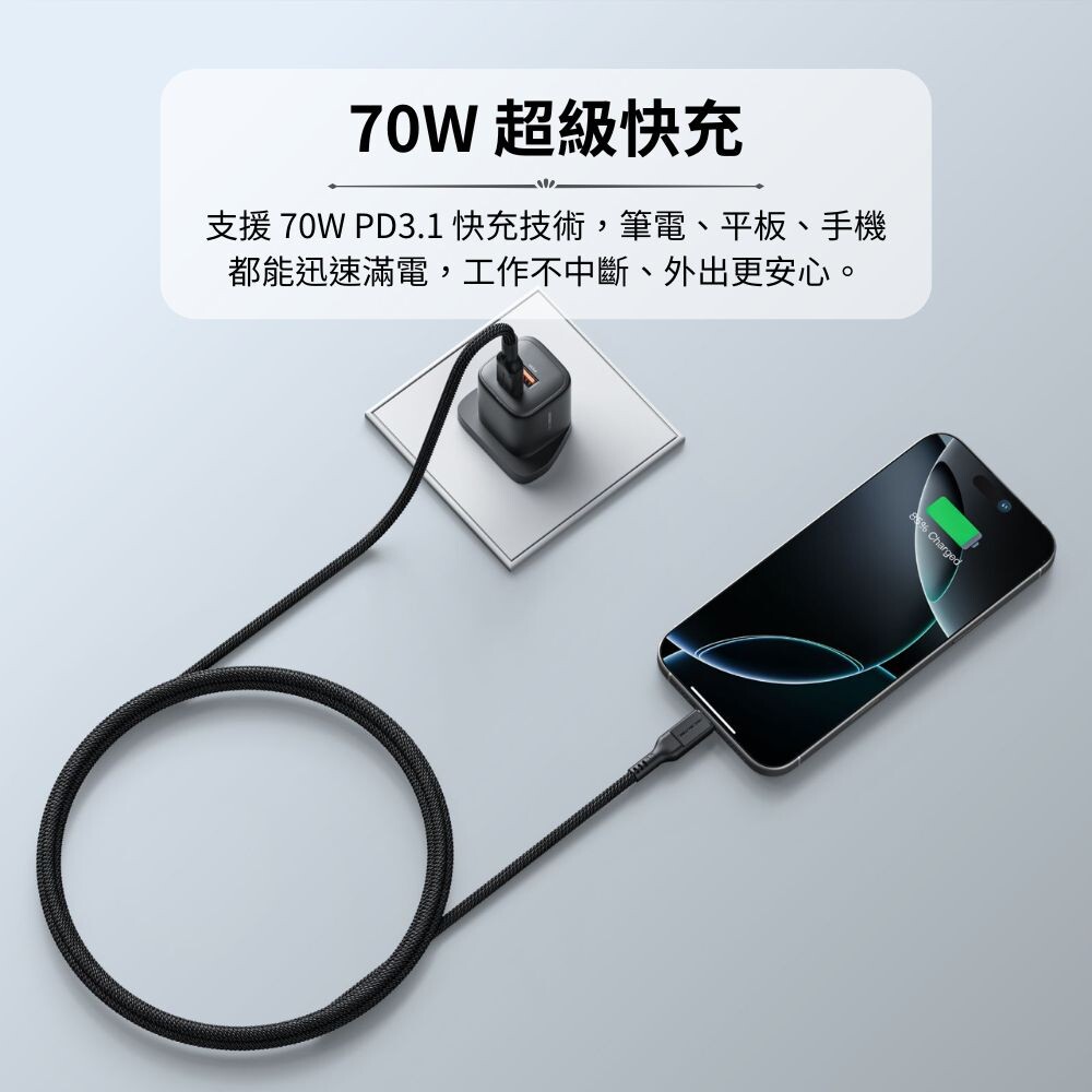 支援 70W PD3.1 快充技術,筆電、平板、手機都能迅速滿電,工作不中斷、外出更安心