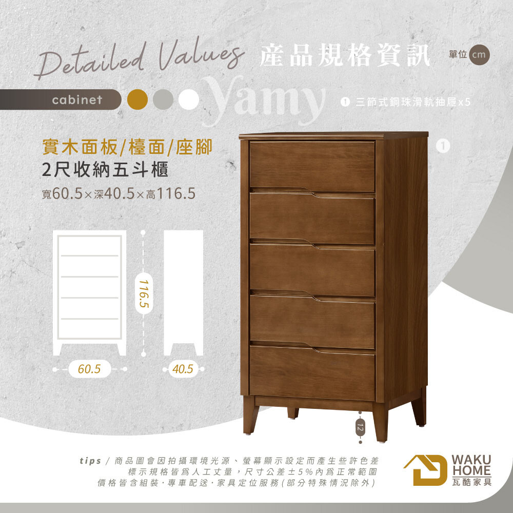 Yamy淺胡桃實木2尺五斗櫃 (實木面板/檯面/座腳)A010-537