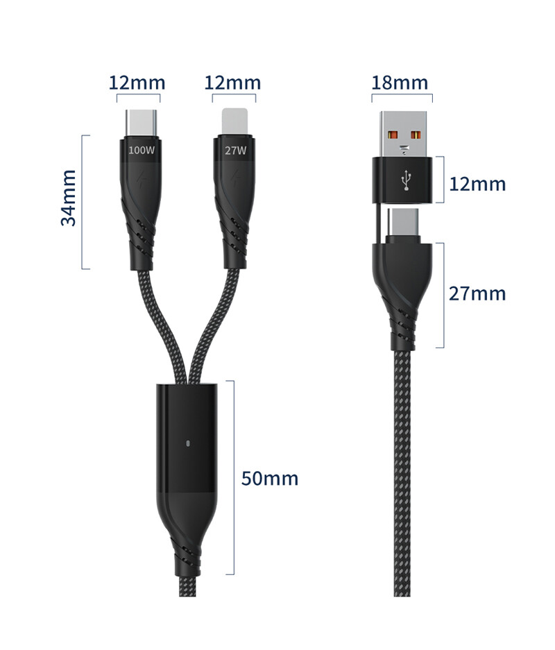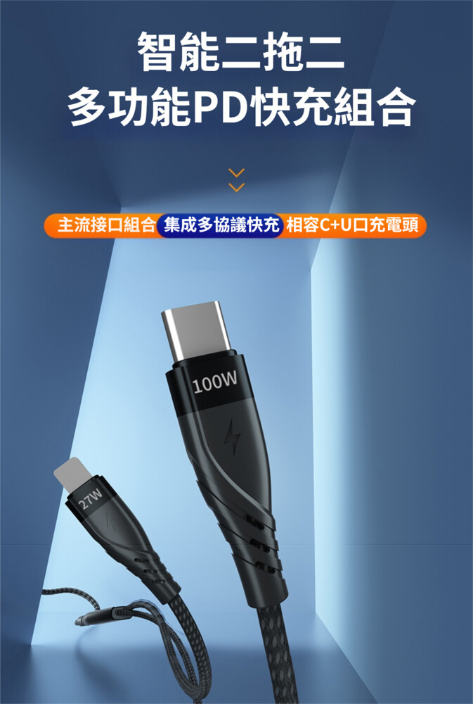 ◆Type-C+USB(F頭) 對Type-C + Lightning 8Pin,2對2快充線
