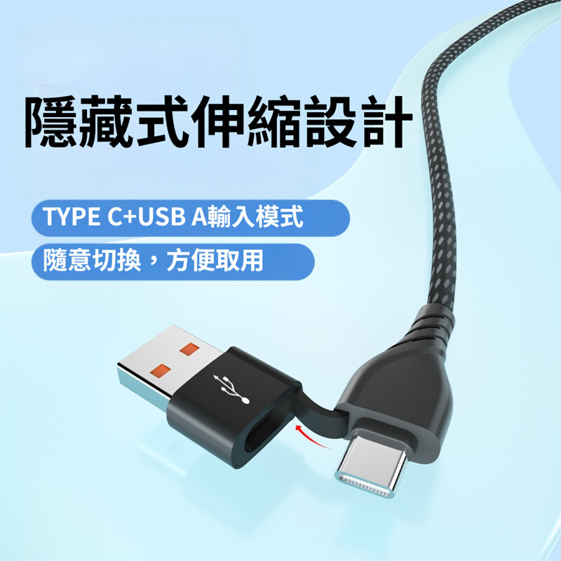 ◆隱藏式接頭,USB接頭拉開變為Type-C接頭