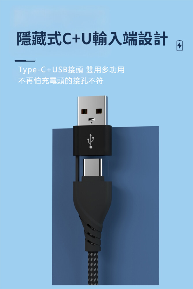 ◆Type-C、USB充電頭孔皆能使用,不用麻煩更換充電頭變壓器