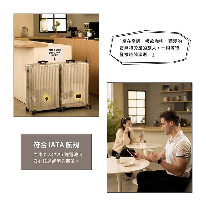 ➣內建 0.847Wh 鋰電池,符合 IATA 航空攜帶規範,旅途中無論隨身或託運行李皆可安心使用。