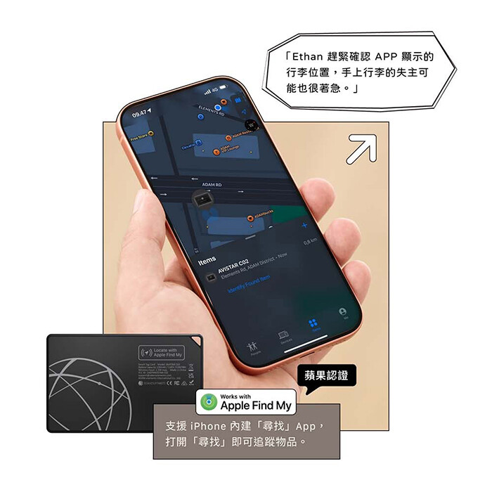 ➣通過 Apple Find My 認證,支援 Apple 「尋找」App,開啟 iPhone 即可追蹤物品。