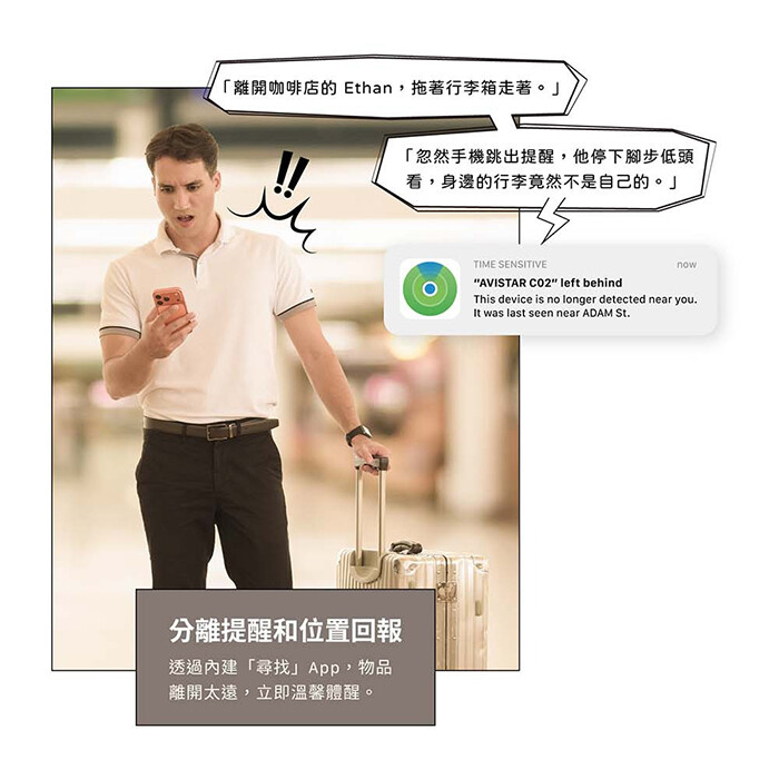 ➣支援分離提醒與位置回報,物品遺落時立即通知,降低遺失風險。