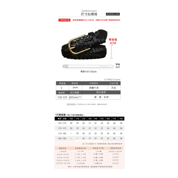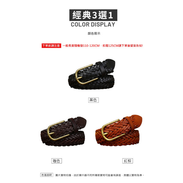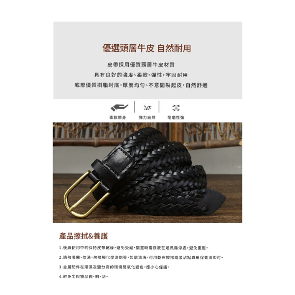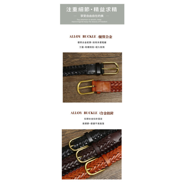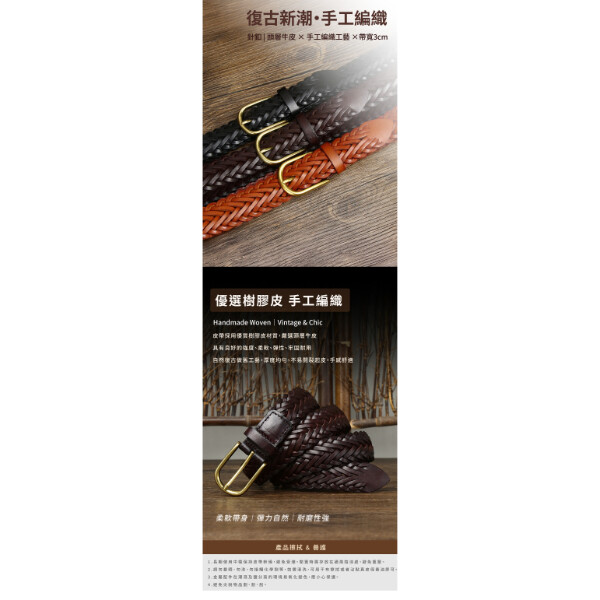 商品名稱:【喜番屋】真皮頭層牛皮編織帶寬3CM男士針扣皮帶腰帶【LL248】