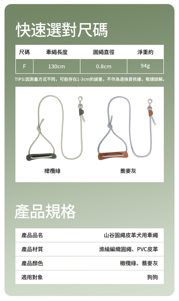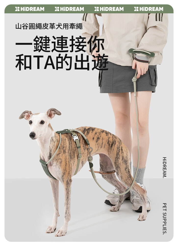 HiDREAM 山山谷圓繩皮革犬用牽繩