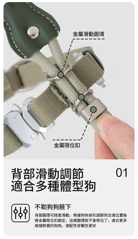 3.柔軟滌綸圓繩,舒適不勒減少夾毛 。