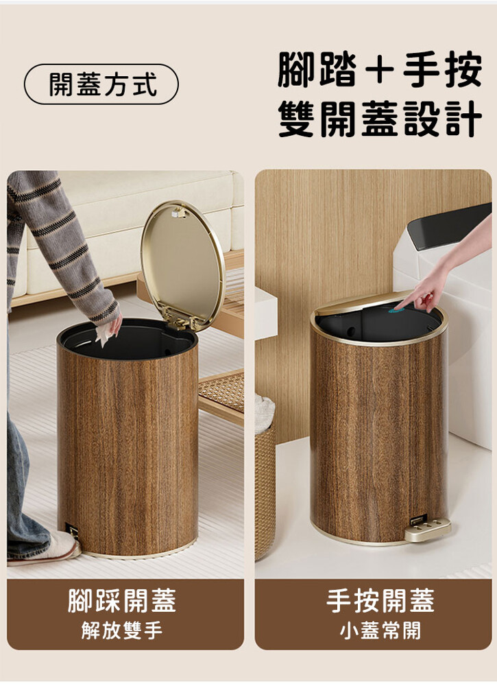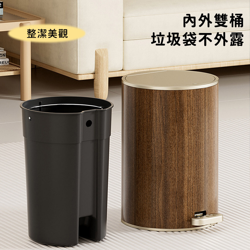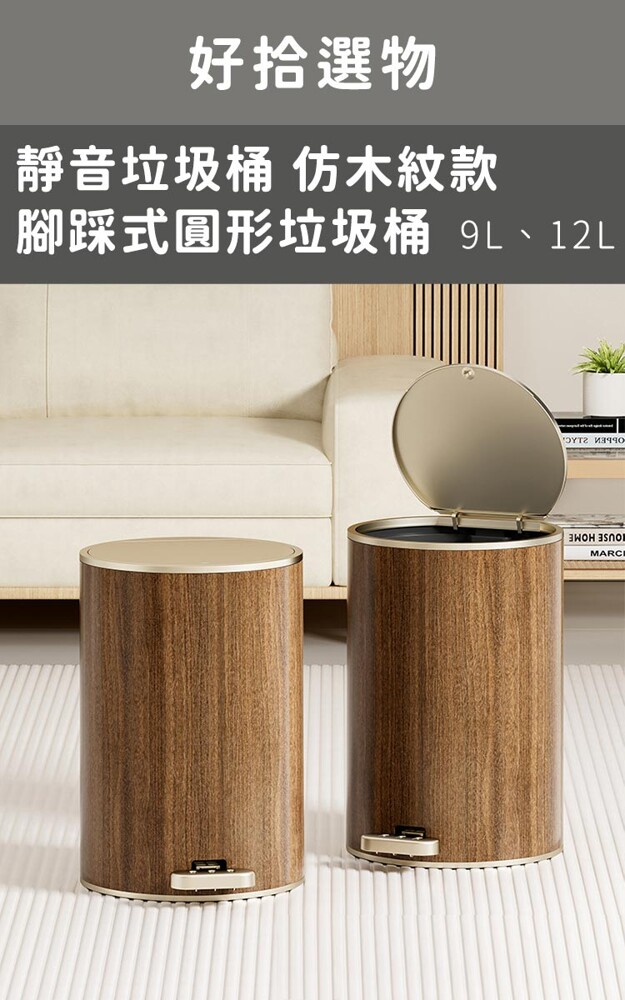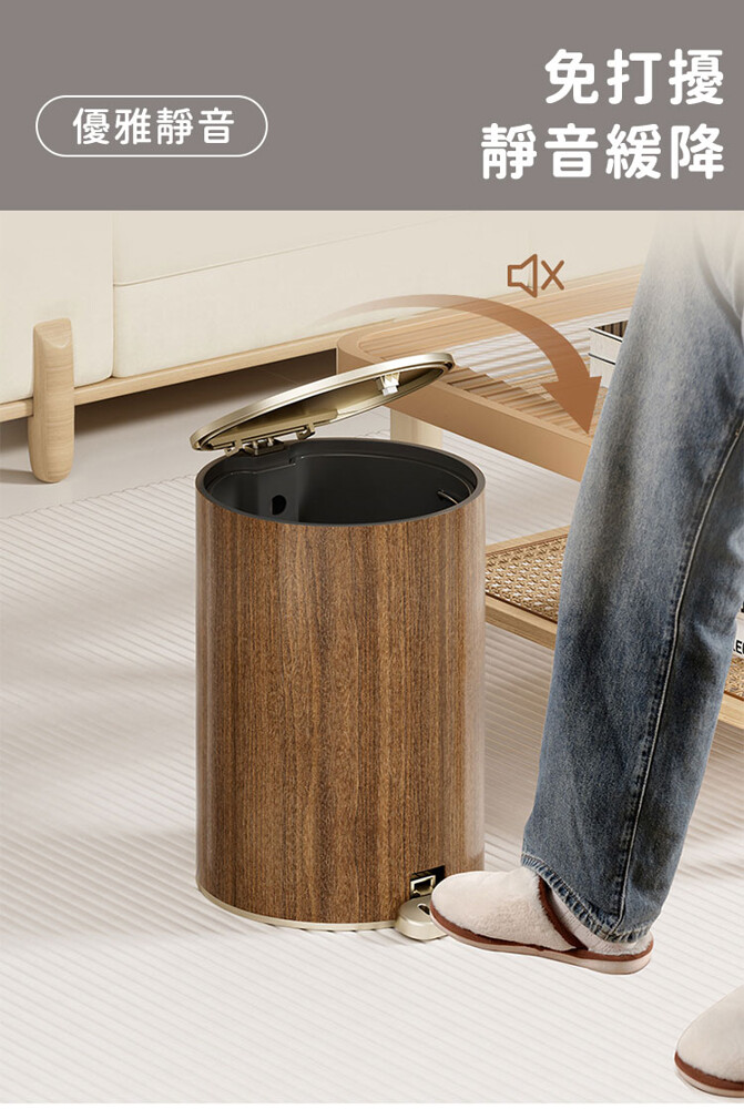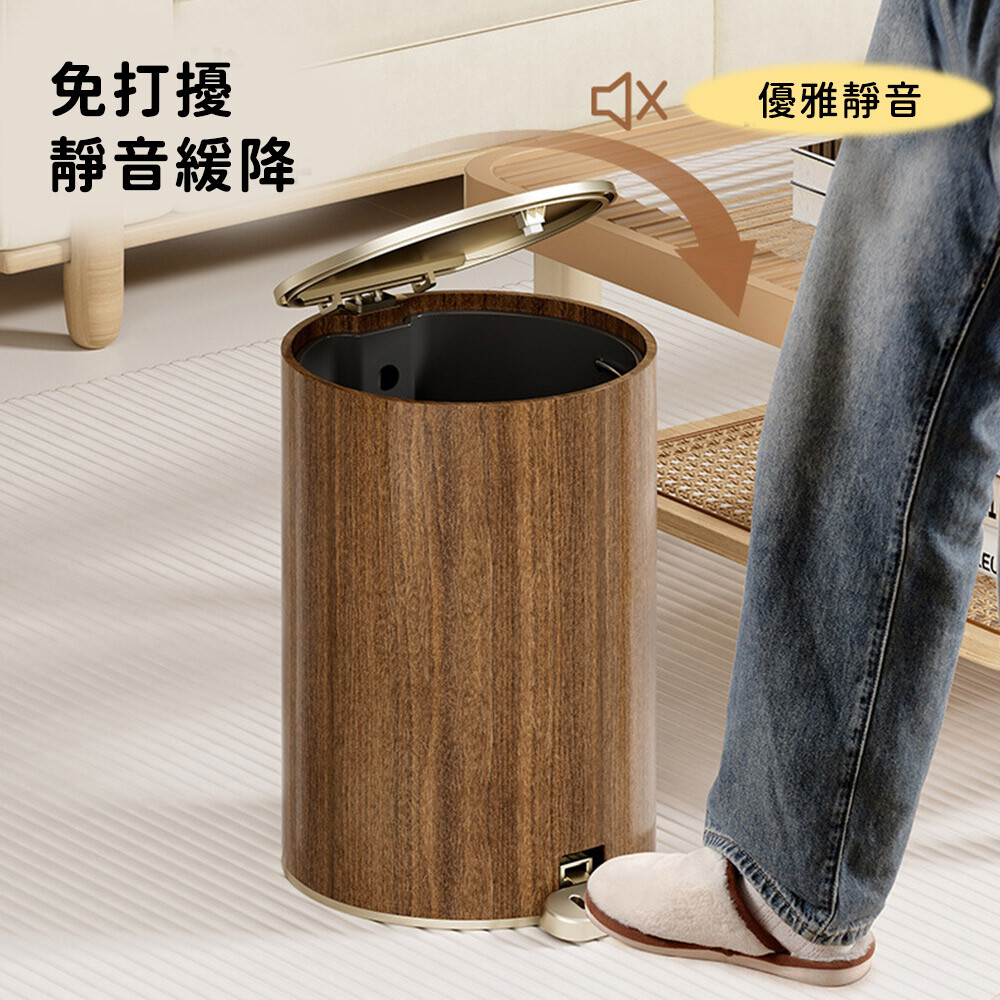 品名:【好拾選物】靜音垃圾桶 仿木紋款 腳踩式圓形垃圾桶
