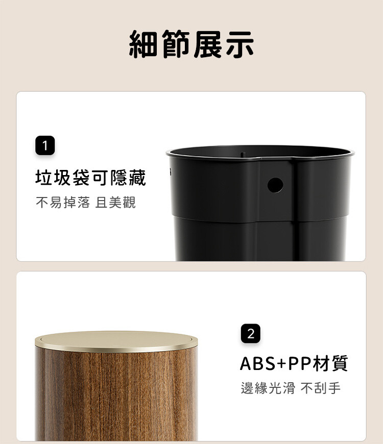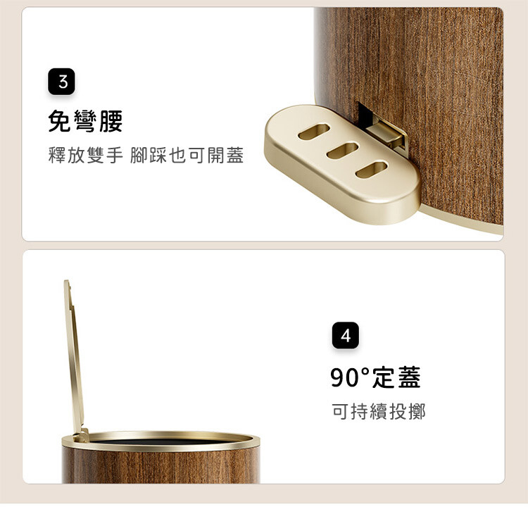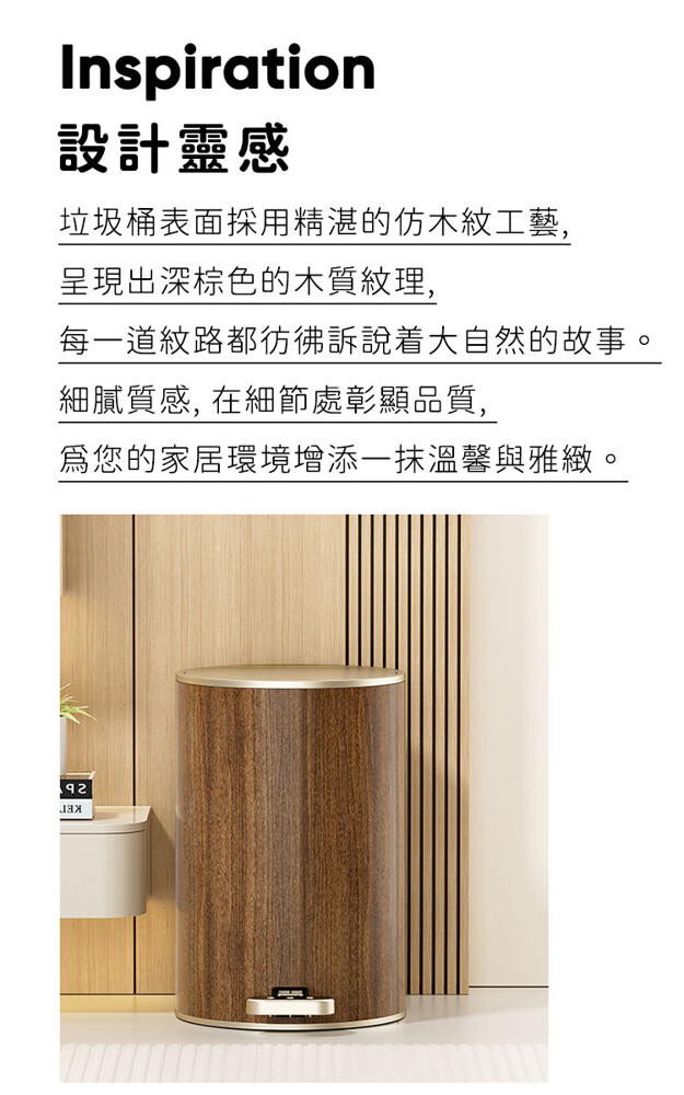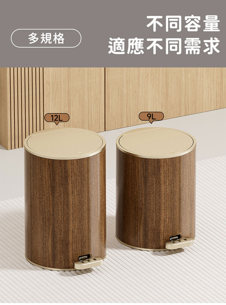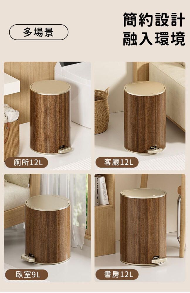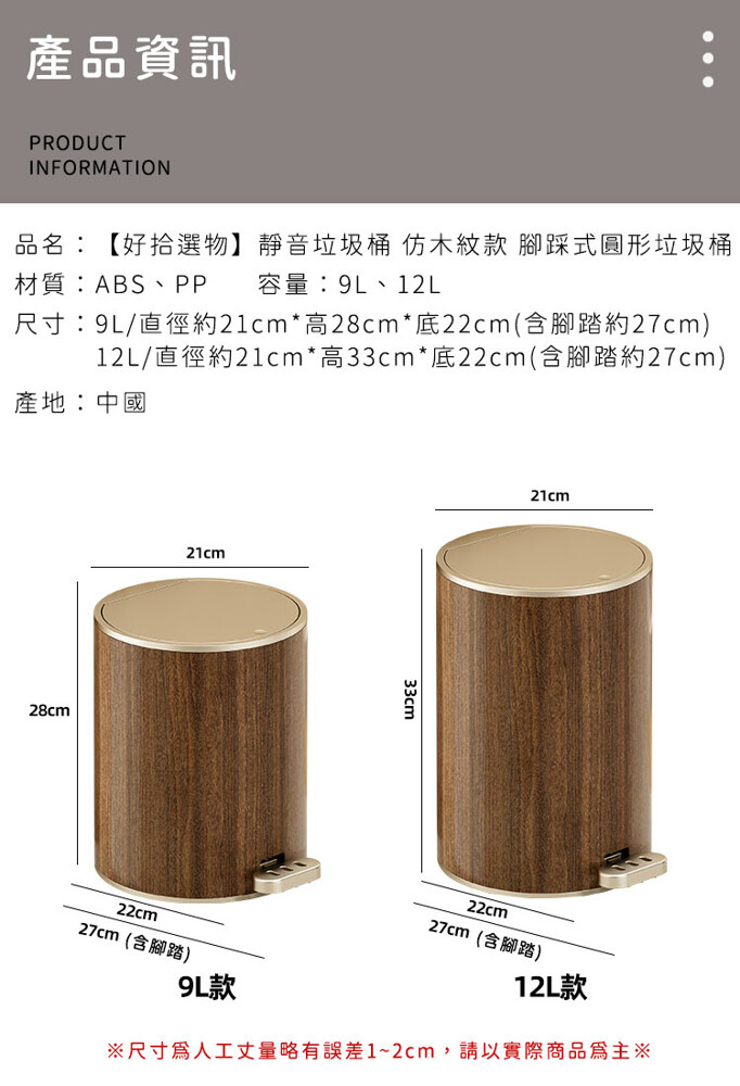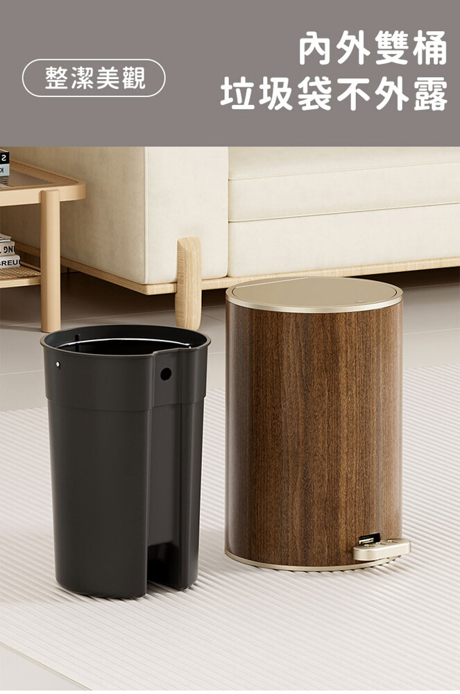 品名:【好拾選物】靜音垃圾桶 仿木紋款 腳踩式圓形垃圾桶