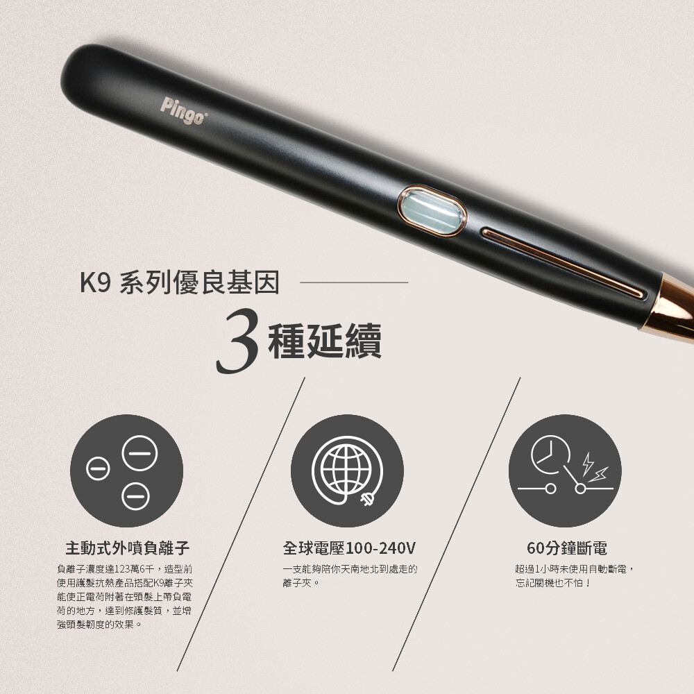 產品名稱:PINGO 台灣品工 Royal K9 外噴式負離子窄版離子夾直捲兩用離子夾