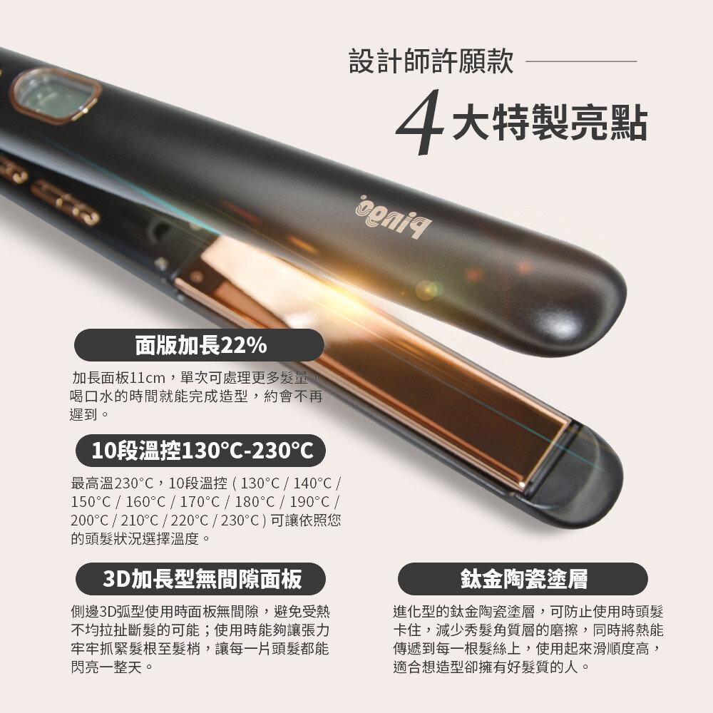 .可根據髮質選擇適用溫度(共十檔溫度:130℃-230℃)。