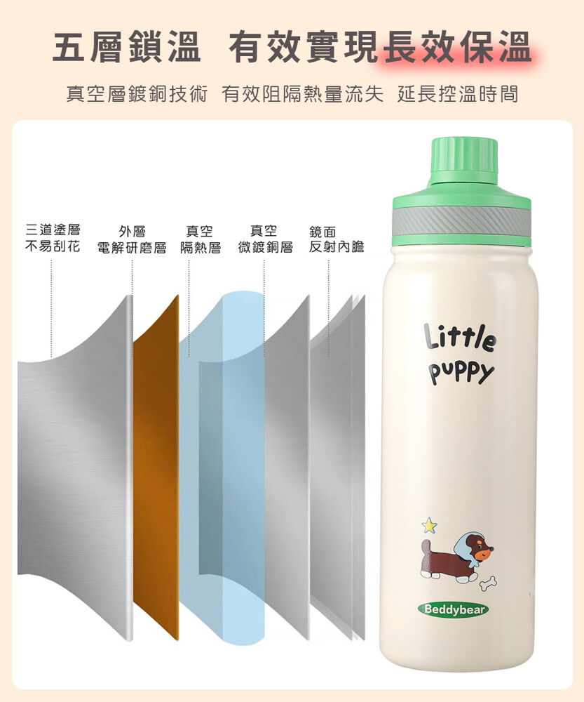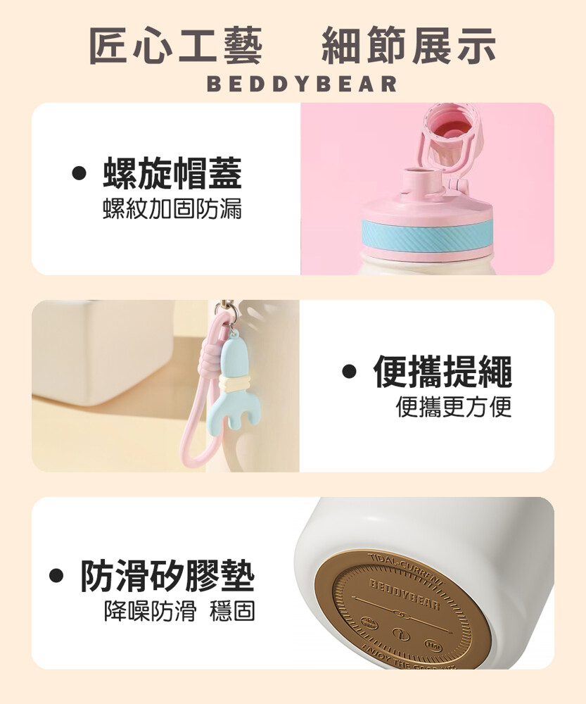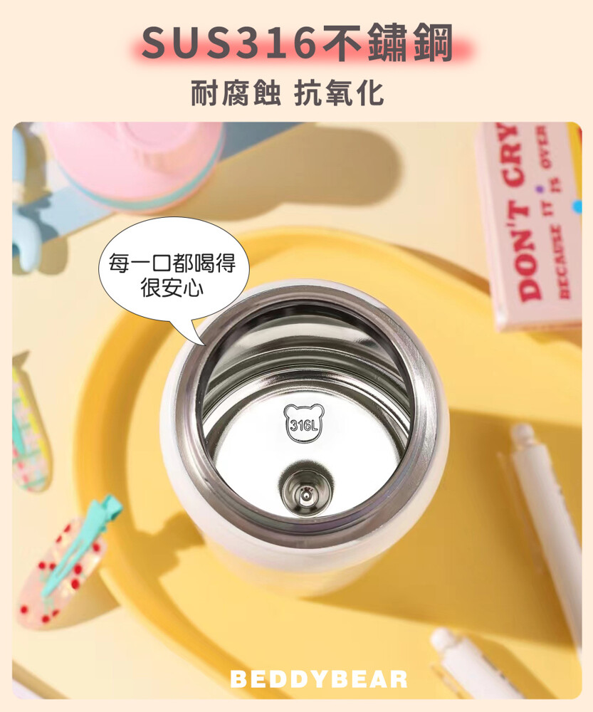 【品名】BEDDYBEAR可愛動物系列雙飲316不鏽鋼保溫瓶 大容量運動水壺 吸管杯 690ml