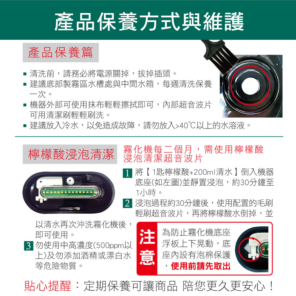 1.上蓋加入59晶除菌液或間除菌液,霧化機藉由高聲波轉化成細微的水分子散佈在空氣中淨化空間,請您安心使用