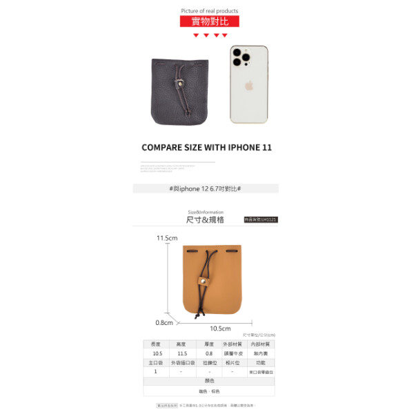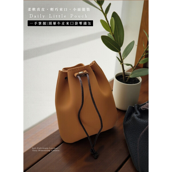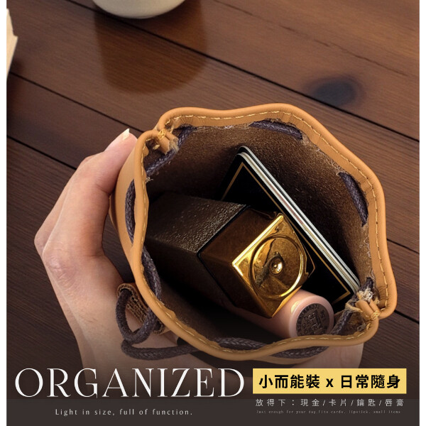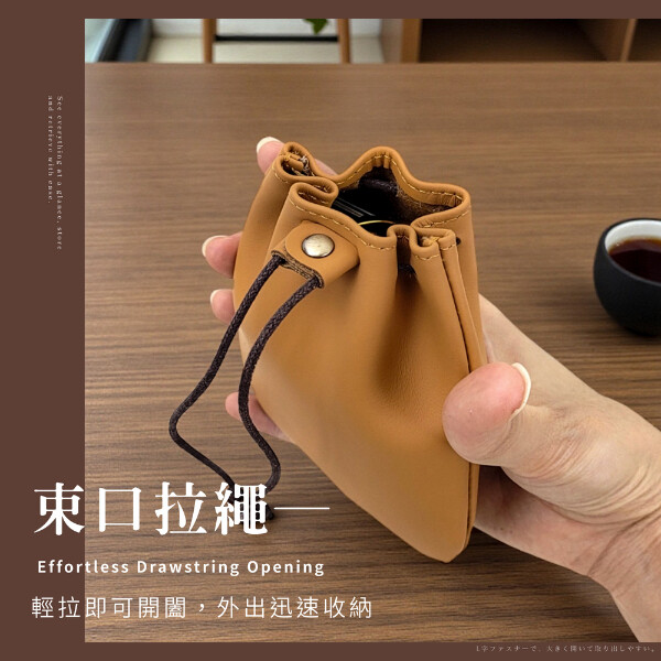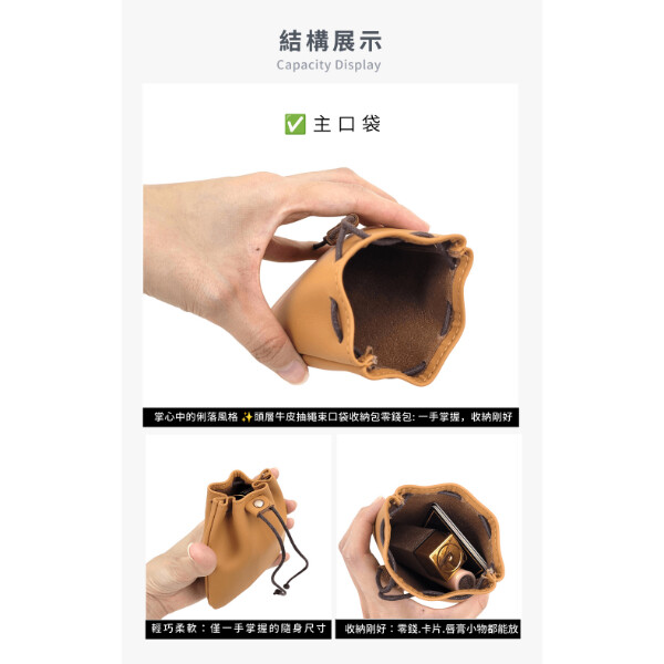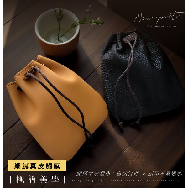 【喜番屋】真皮頭層牛皮抽繩束口袋收納包零錢包【LH1121】