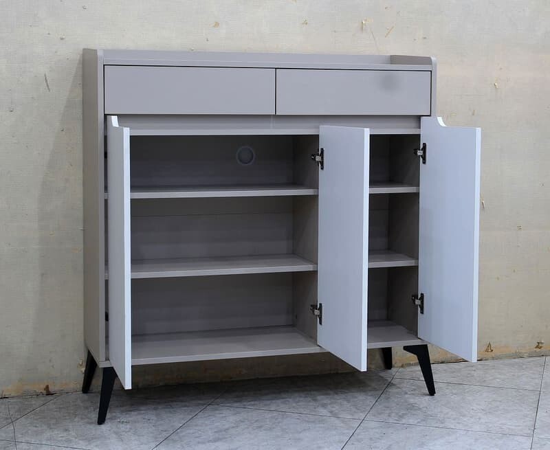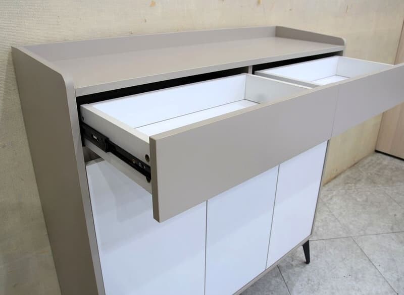 尺寸鞋櫃 , 100*32*104cm , 檯面高100cm 鞋櫃 , 5300元 0510145材質板材 : 全包式MDF材質 塗裝 : 灰棕色+白色耐磨木皮 , ABS封邊質感細緻 五金 : 內建二抽採雙截式鋼珠滑軌 , 門片緩衝後鈕 ,15.5cm高黑鐵腳座,隔 板二段可調高低 , 內建一組透氣孔舊品回收說明在一般正常使用情況下,非人為因素、安裝不當、外力等影響下,產品 享有一年保固年限。如有疑問可先透過「問與答」詢問。