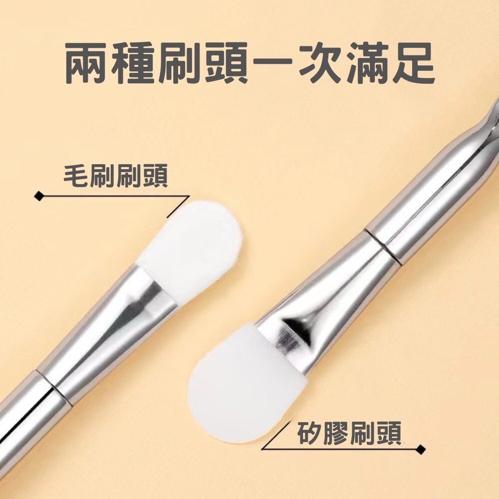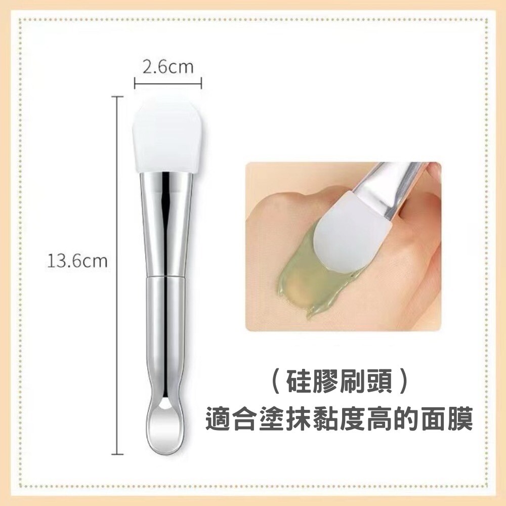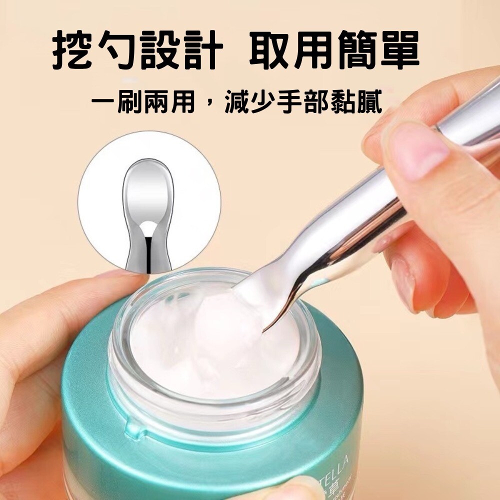 矽膠勺端可挖取面膜膏、乳霜,乾淨不沾手;刷毛端均勻上膜不卡粉,細緻服貼。