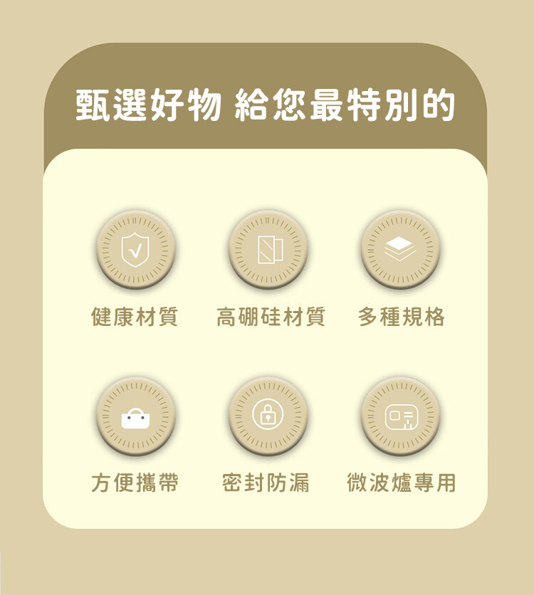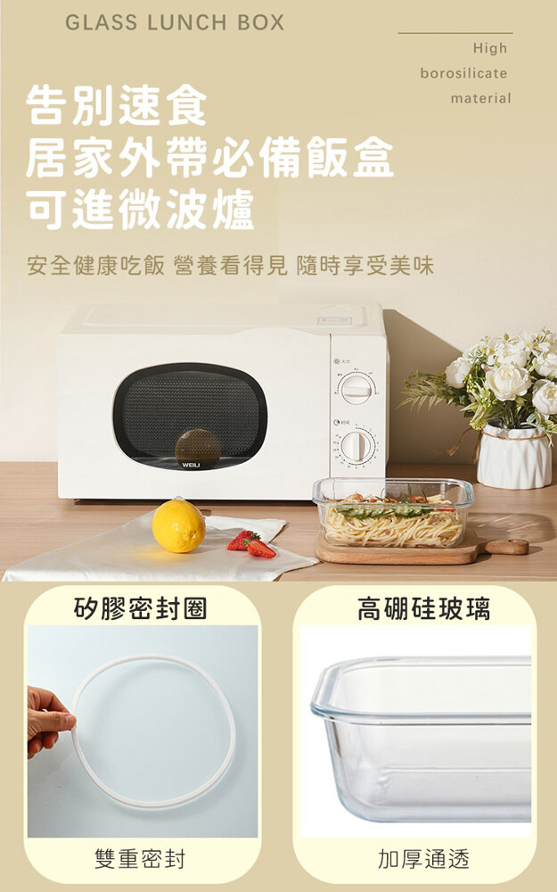 材質:高硼硅玻璃、食品級PP盒蓋、密封矽膠圈