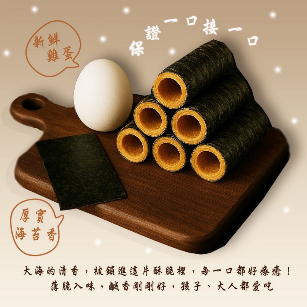 酥脆爽感,海苔香氣滿分,蛋捲酥酥脆脆~