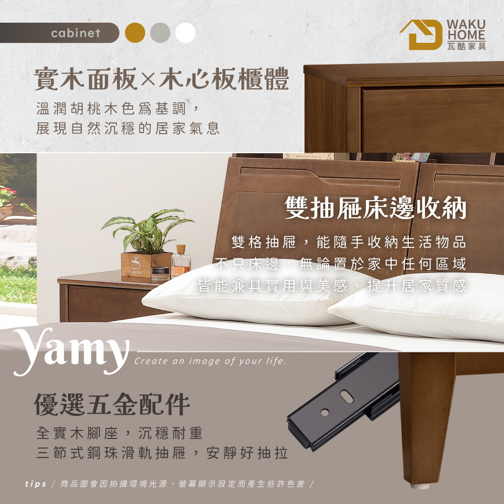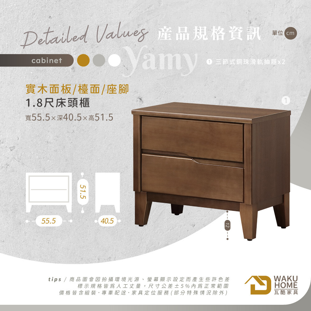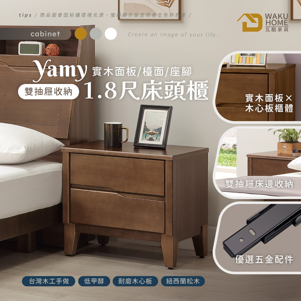Yamy淺胡桃實木1.8尺床頭櫃 (實木面板/檯面/座腳)A010-539
