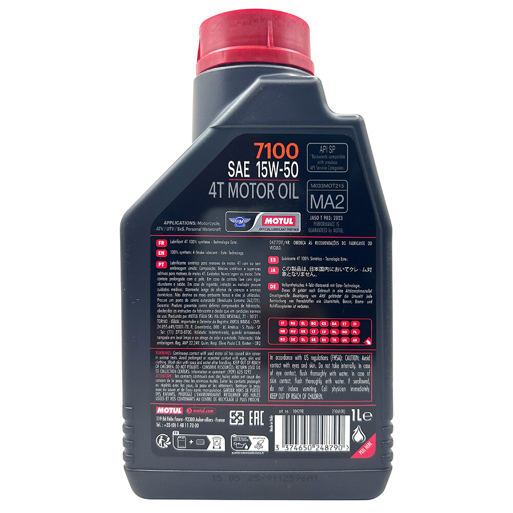 MOTUL 7100 4T 15W-50 為旗艦級 ESTER 酯類基礎油 全合成 4 行程重機機油,專為高轉速、高負載、長距離與高溫騎乘所設計。