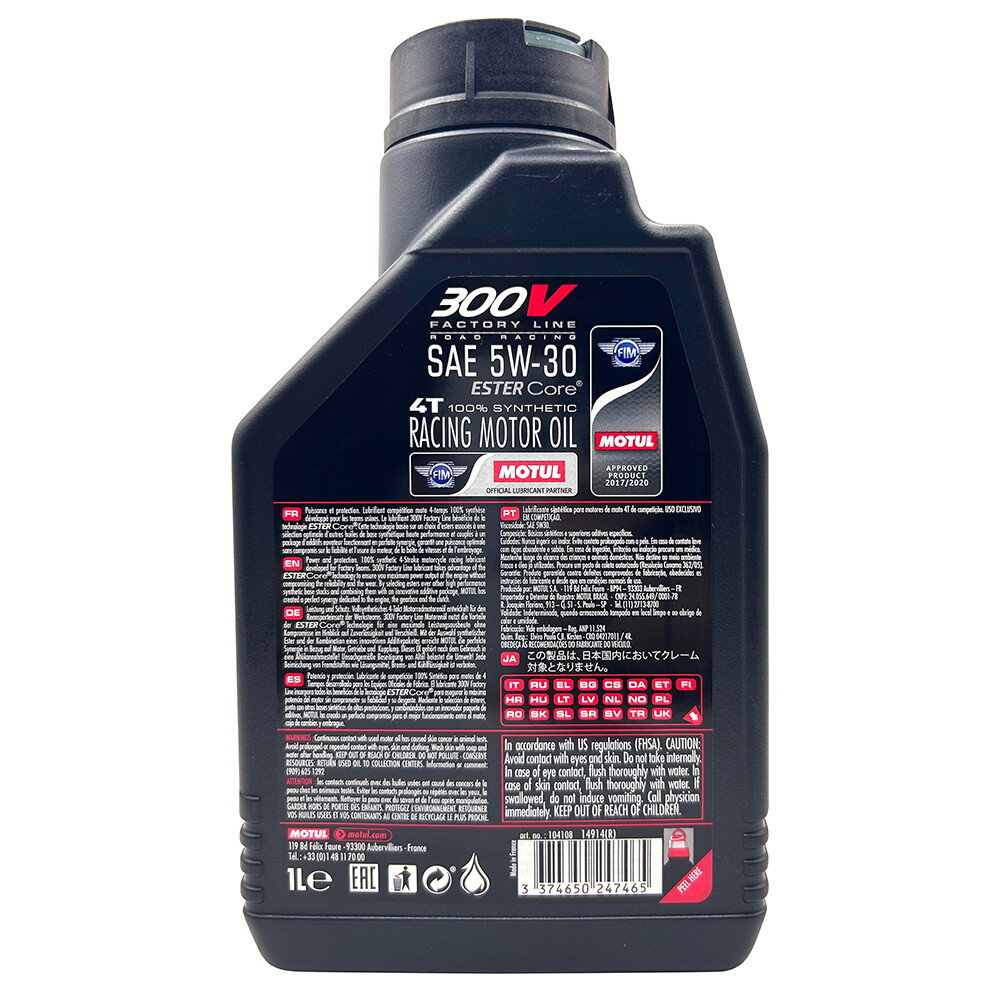 MOTUL 300V 4T 5W-30 是 MOTUL 最高階的 Factory Line 賽車級酯類(ESTER Core®) 全合成機油,專為公路競技與專業賽事而生。