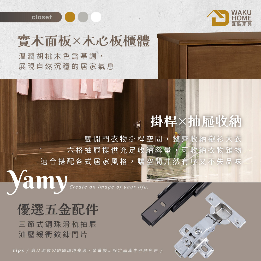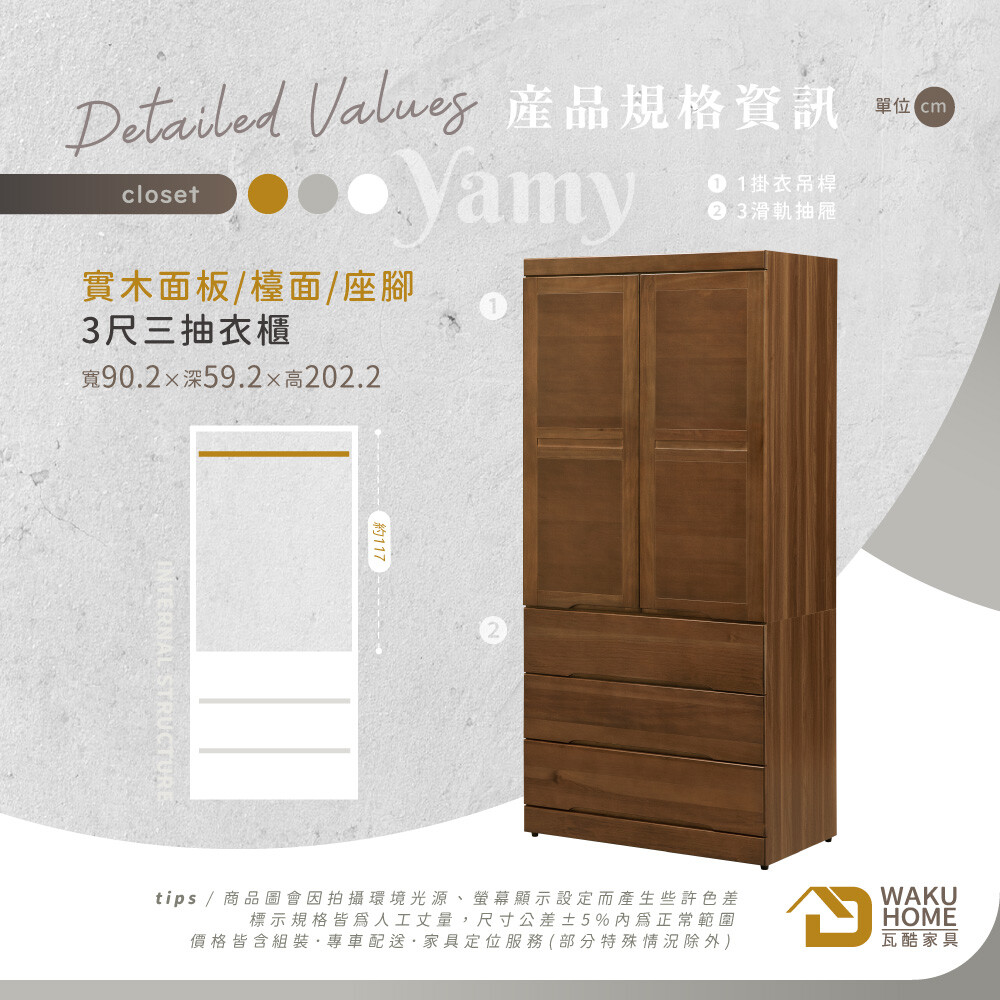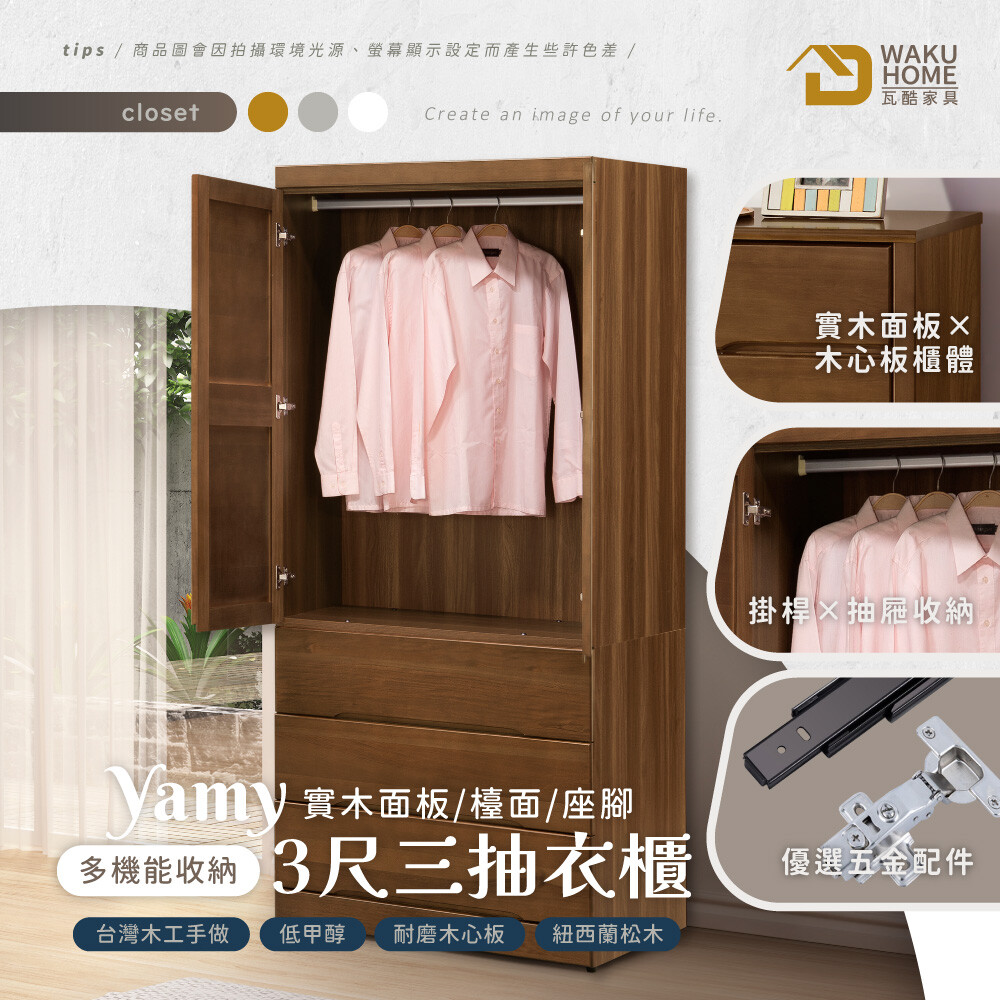 Yamy淺胡桃實木3尺三抽衣櫃 (實木面板/檯面/座腳)A010-723