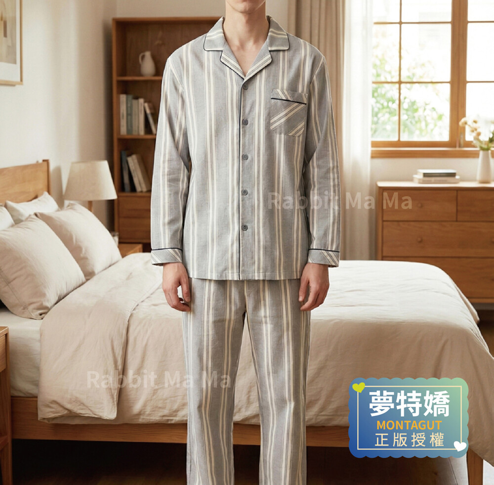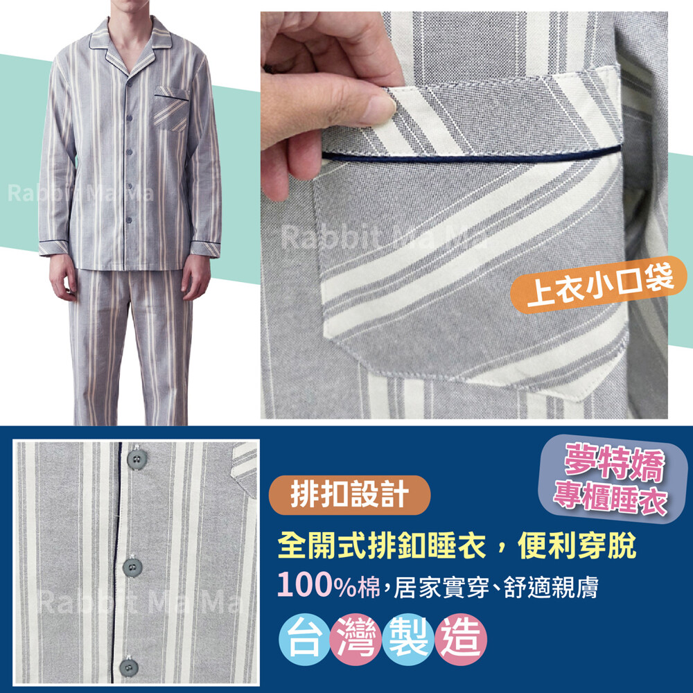 夢特嬌睡衣 台灣製精典條紋男生睡衣 58529 純棉睡衣 居家服.男性睡衣 兔子媽媽