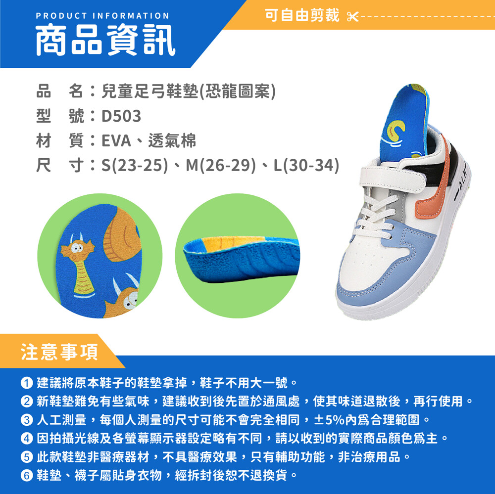 ► 商 品:兒童足弓鞋墊(恐龍圖案)