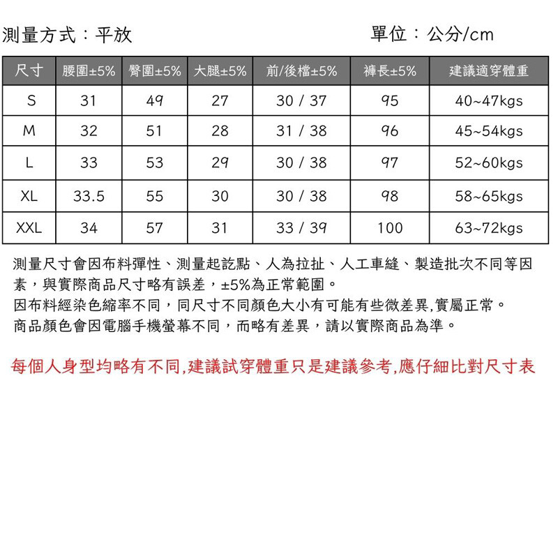 3. 測量尺寸會因布料彈性、測量起訖點、人為拉扯等因素,與實際商品尺寸略有誤差,正負5%為正常範圍。