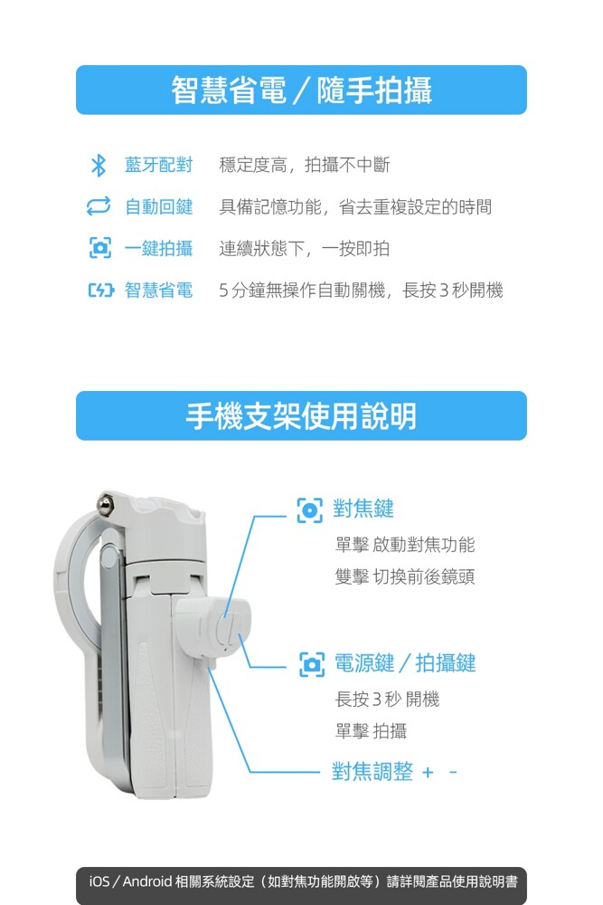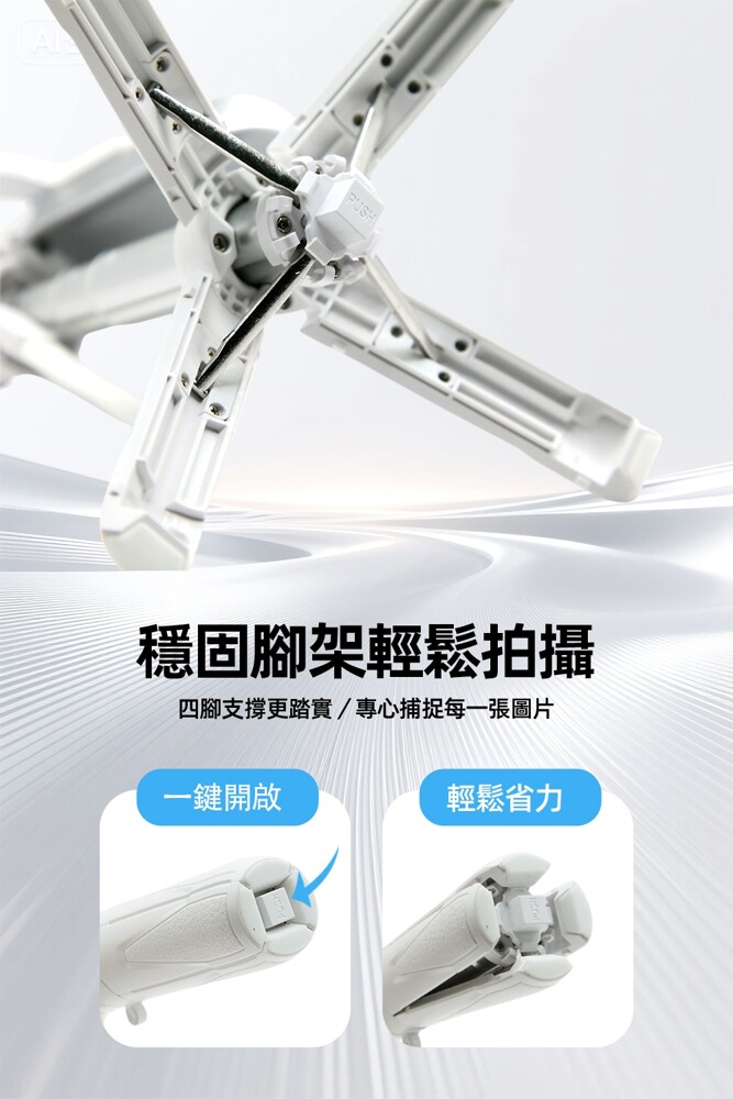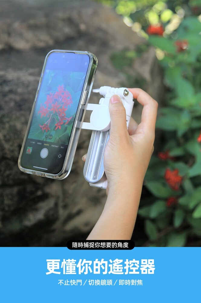 內建可拆式藍芽5.2版遙控器,採用Type-C充電,一鍵輕鬆拍照,支援遠距操作,自由調整拍攝角度與位置,無需他人協助。