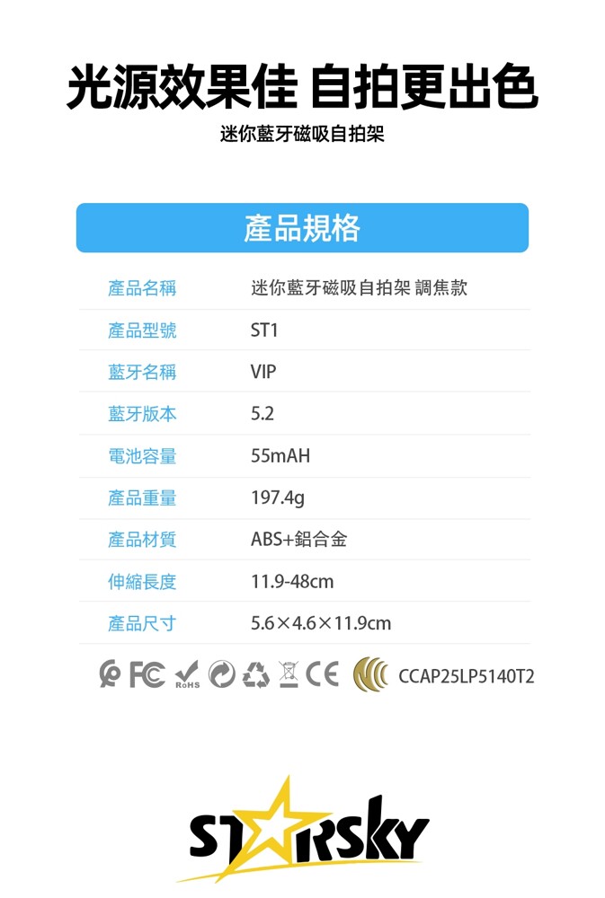 超輕量多功能藍芽磁吸式自拍棒 藍芽進階版(調焦+對焦+拍照) 加補光燈