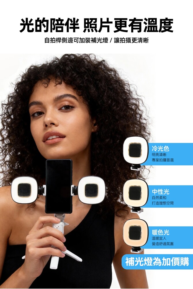 輕鬆調整長度,無論是自拍、團體合照還是Vlog拍攝,都能找到最理想的角度與距離。