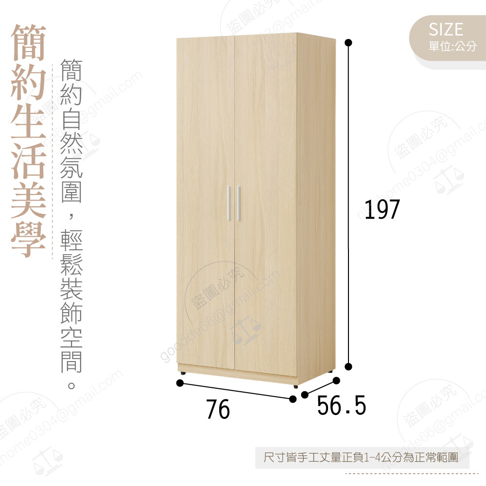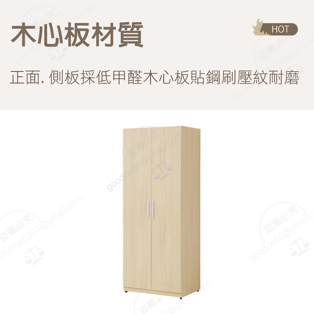 《奈斯家具Nice》335-07-HA 克萊兒優雅白2.5尺衣櫥/衣櫃/雙桿