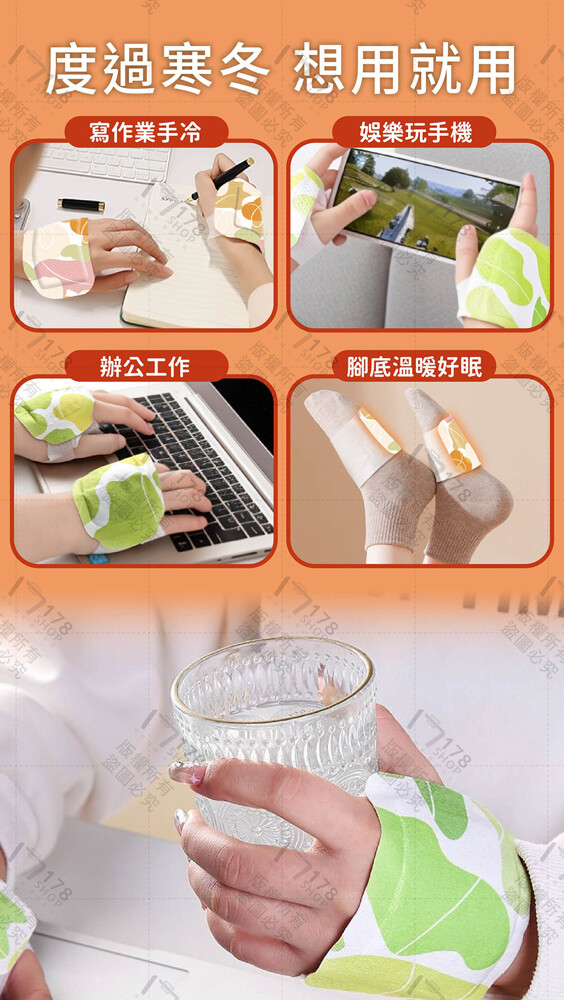 不只是暖手!還可以套在腳底(當暖足貼)、手腕、腳踝,哪裡冷就套哪裡。