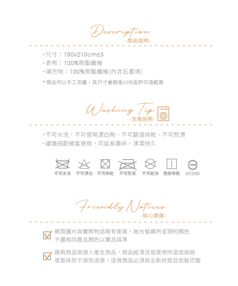 填充物:100%聚酯纖維(內含石墨烯纖維)