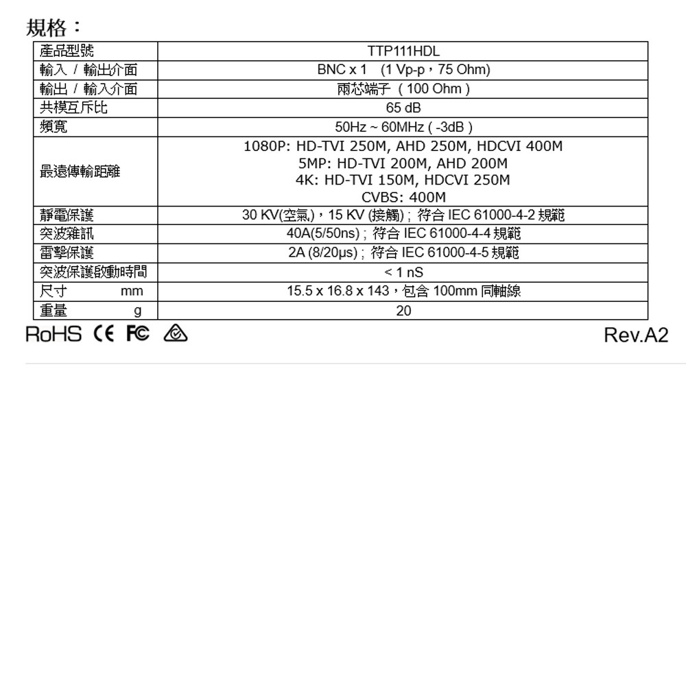 影像格式 HD-TVI, AHD, HDCVI, CVBS