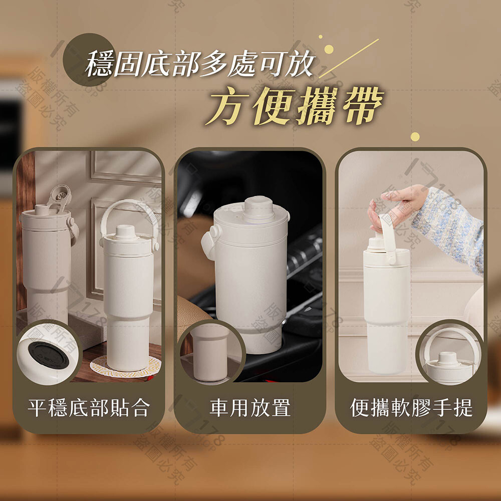 杯蓋自帶軟膠提環,手指一勾就走;底部設計符合大部分車用杯架,開車族必備。