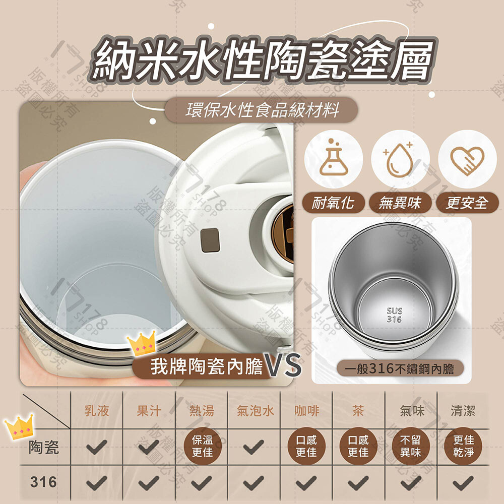 ☕ 納米陶瓷內膽:抗酸鹼、不卡異味、一沖即淨