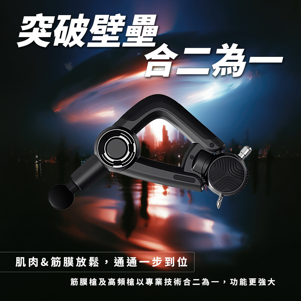 高頻槍與筋膜槍專業技術整合,肌肉與筋膜放鬆一次到位。強勁輸出與深層舒緩兼備,功能更全面,舒壓更高效。
