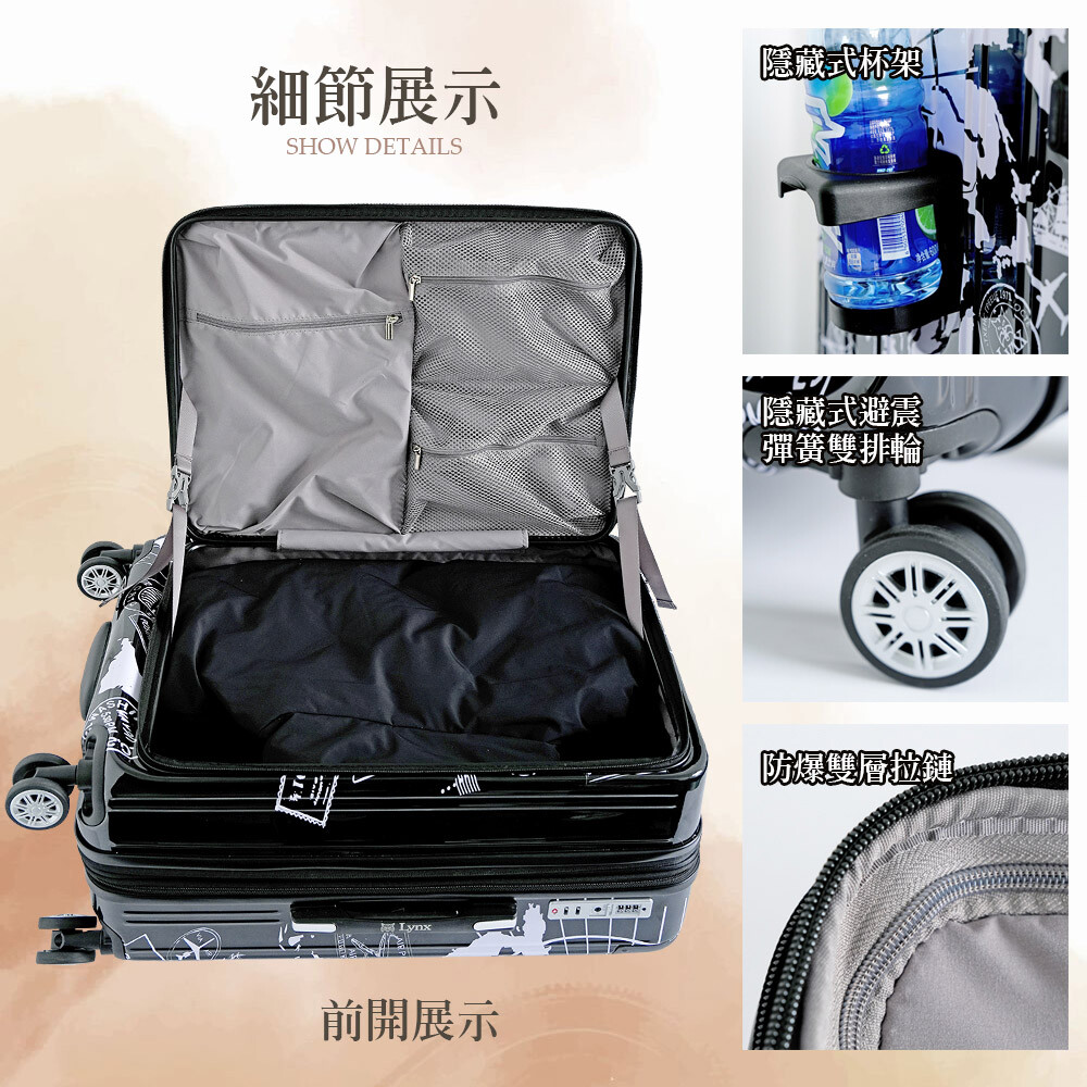 【Lynx】美國山貓 20吋雙開登機箱(地圖郵戳、防爆拉鏈、避震雙排輪、TSA海關鎖、可加大)