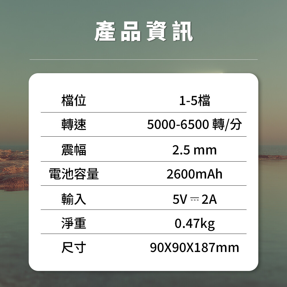 守護者高頻槍提供五段震動強度,轉速可達 5000–6500 轉/分,震幅為 2.5mm,能有效針對筋膜與深層軟組織,手持穩定,單手也能輕鬆操作。規格完整透明,讓消費者選購更安心。
