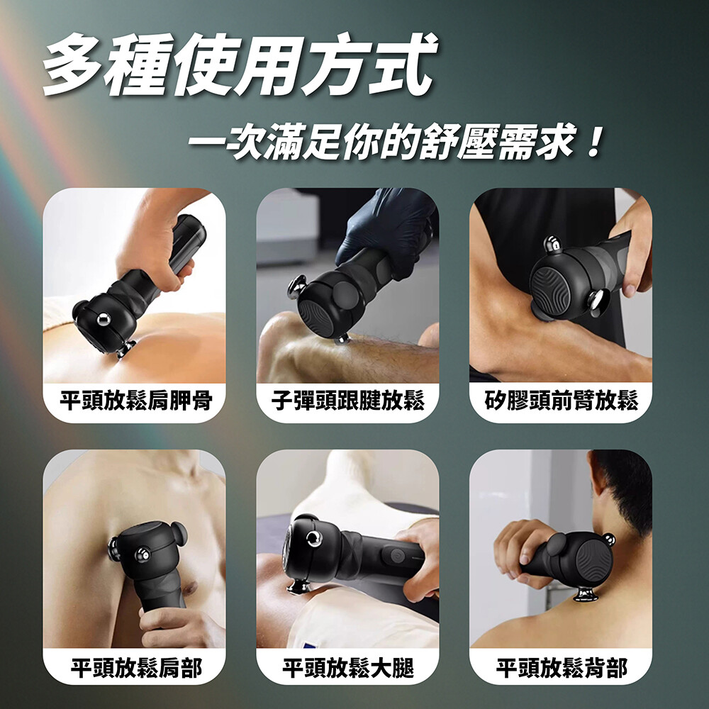 A:【守護者舒緩高頻槍】整合四種按摩頭於一機,無須替換按摩頭,精準又即時地掌握各部位的按摩需求。