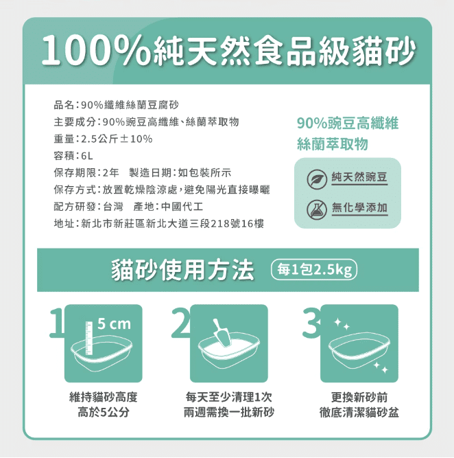 【毛豆寵物】毛孩時代 90%纖維絲蘭豆腐砂 貓砂 2.5KG