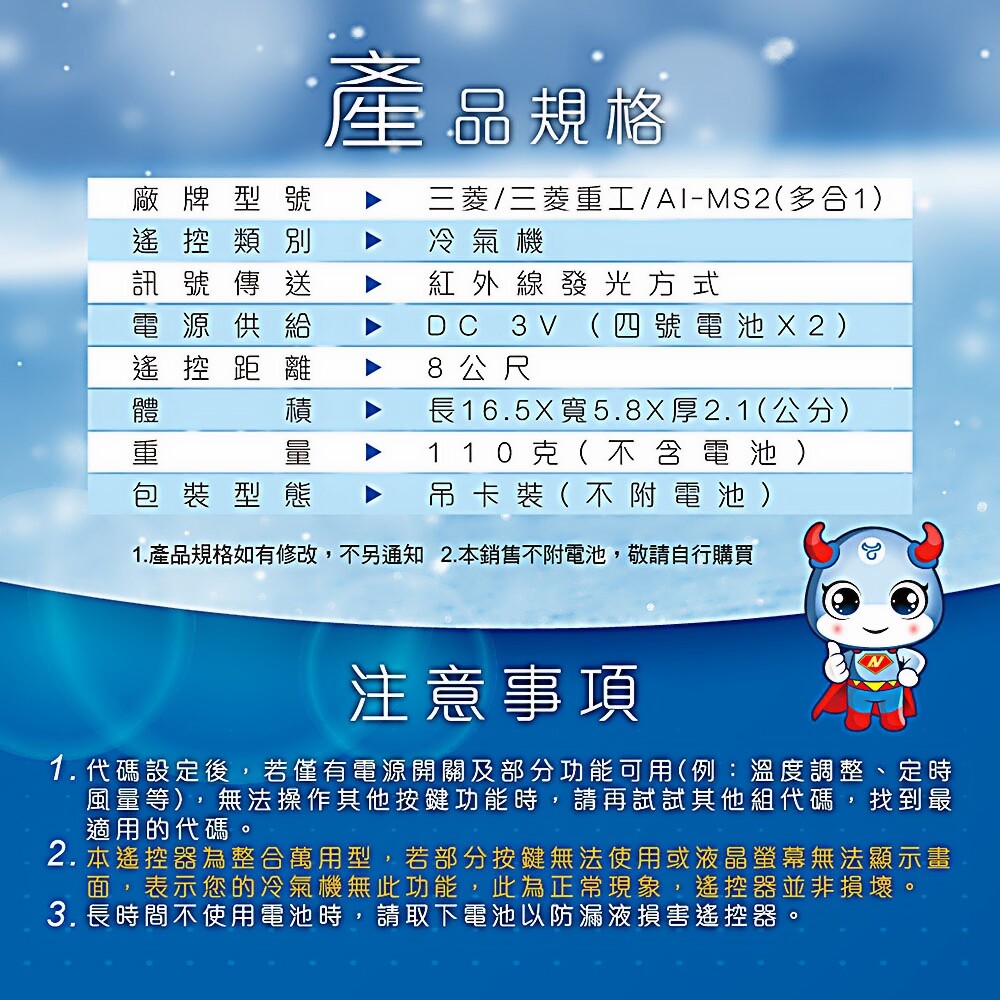 【EC】三菱+三菱重工專用冷氣遙控器(北極熊系列) AI-MS2