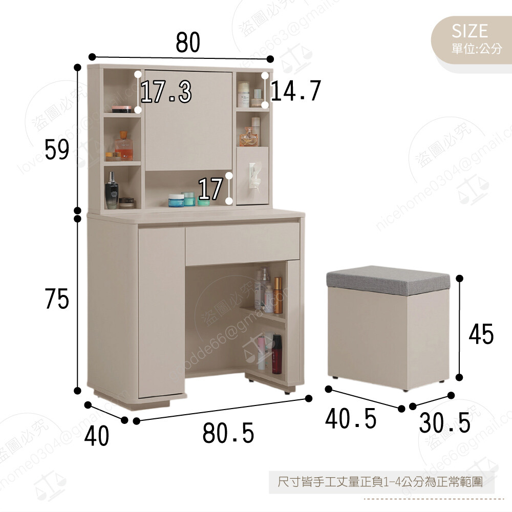 化妝椅:寬40.5×深30.5×高45公分