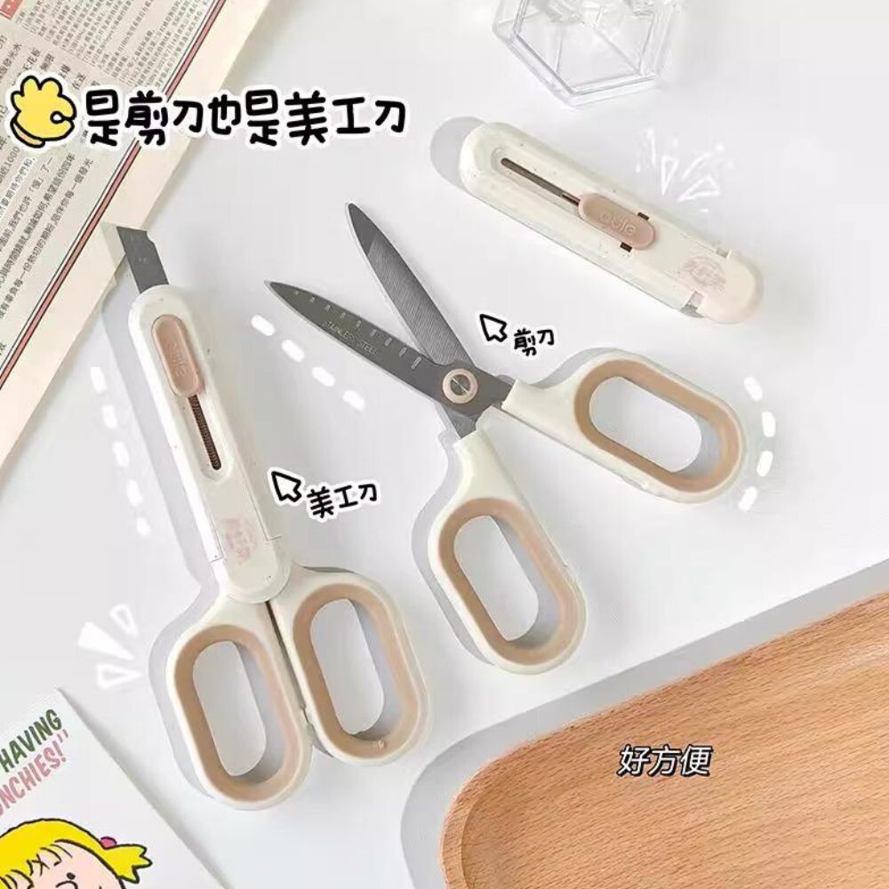 方案入數2=2支 方案入數4=4支 以此類推... 一把兩用 功能齊全 刀口鋒利 裁剪省力 自帶保殼 防止傷手 小巧便捷 好握舒適 尺寸:19*9cm 材質:pp+不鏽鋼 重量:56.4g 尺寸為手工測量 少許誤差