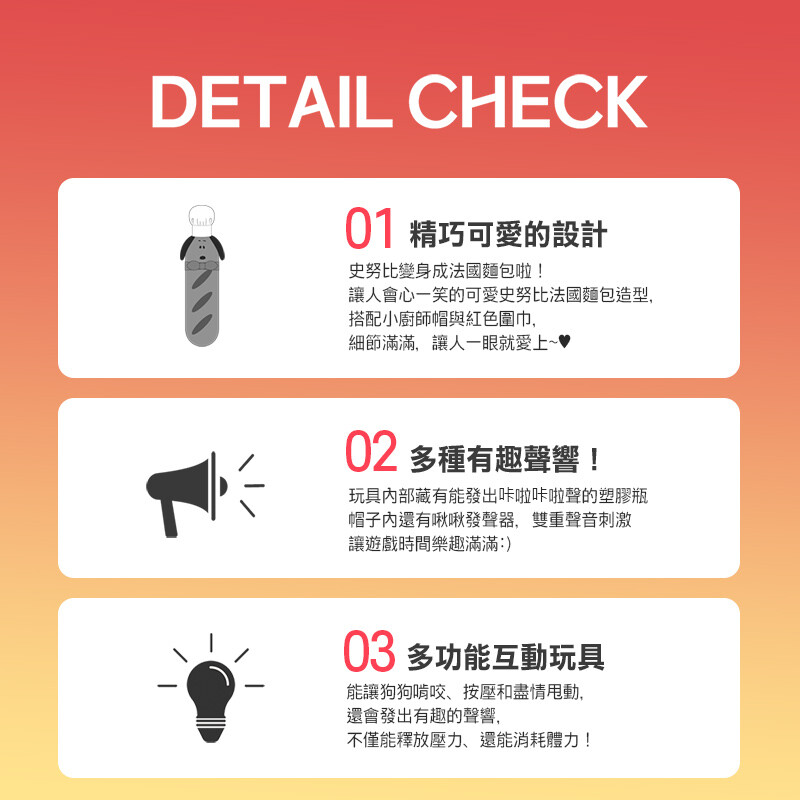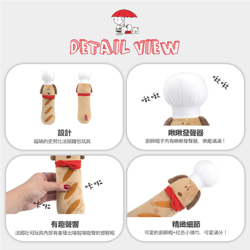 【PEANUTS】史努比小廚師法國麵包發聲玩具 (寵物玩具)